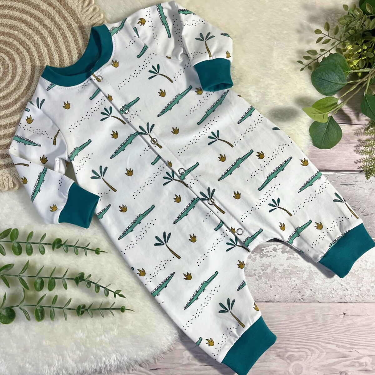 Awesome crocodile print sleepsuit – a perfect gift for a new arrival.