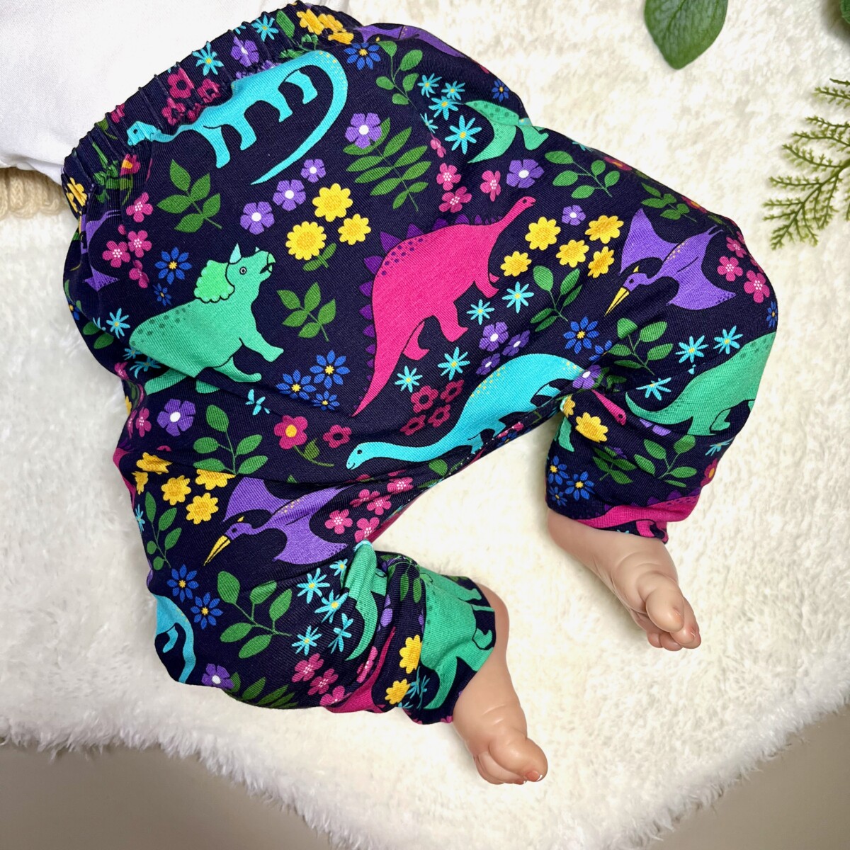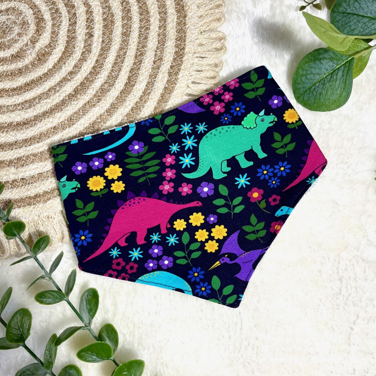 Beautiful floral dinosaur print leggings and matching dribble bib – a perfect gift set for a new arrival.