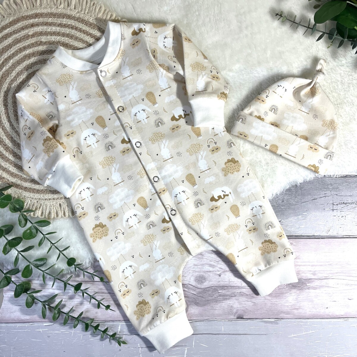 Sleepy Bunnies Sleepsuit and Hat