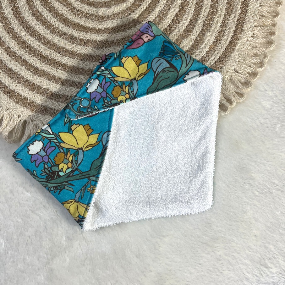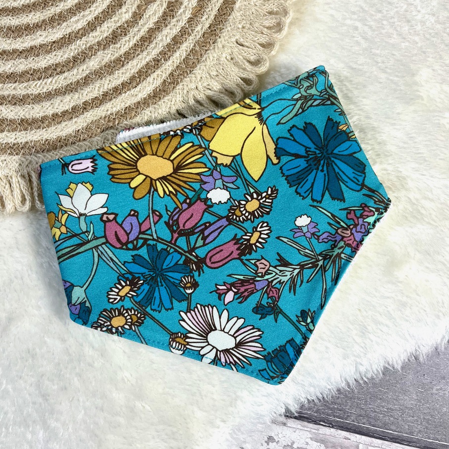 Adorable wildflowers dribble bib with soft absorbing terry towelling backing, suitable from 0 – 12 months.